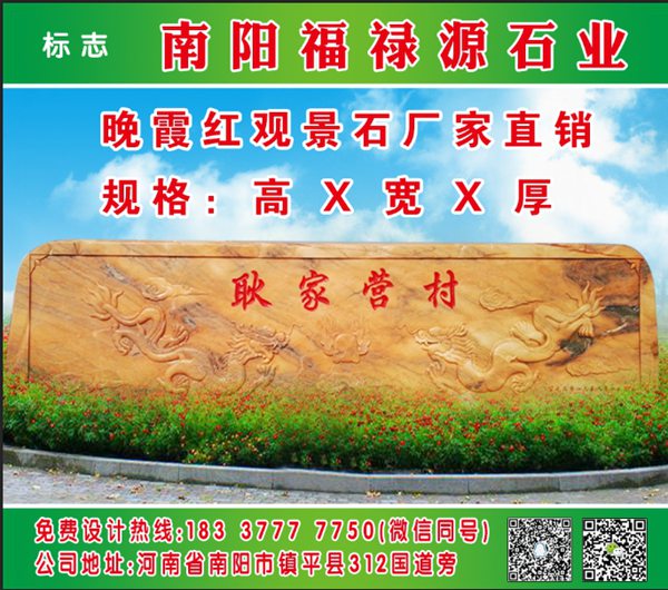 主要經(jīng)營(yíng):晚霞紅景觀石、晚霞紅雕刻石、晚霞紅自然石、紅色刻字石、花崗巖門牌石、草坪石、鵝卵石、假山石、園林石、南陽(yáng)奇石、米黃玉、魯山玉、假山制作、石獅子、石亭、石牌坊、石欄板各種石雕等。