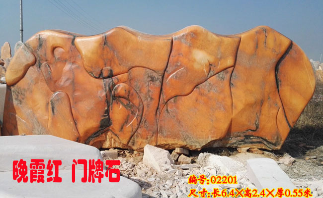 景觀石門牌是一個公司一張巨大的名片,是公司的實力的象征,所以每一個公司的老板都會把制作公司門牌石的事情當成重要的一項任務來完成,這樣重要的工作常見的就是公司的一把手親自把關的,或者老板會派出自己相信的人,來專門來監督這件事情的進度。根據我們經營十余年的景觀石經營的經驗,常見的就是公司老板親自到廠子里來挑選自己中意的景觀石,福祿源石業處在晚霞紅景觀石的原產地鎮平,專業制作各種景觀石,門牌石,是經營了十余年的景觀石廠家,廠子里的景觀石數量多,景觀石設計制作的經驗豐富,可以完全按照客戶的意圖來設計制作景觀石,上圖中為您展示的就是我們新的一款景觀石產品,景觀石現貨晚霞紅門牌石推薦。