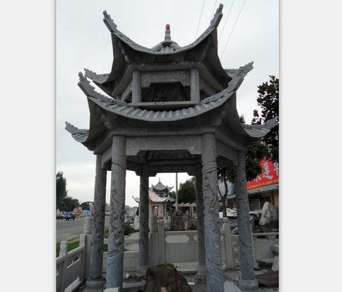 青石 雙層 龍柱 石亭