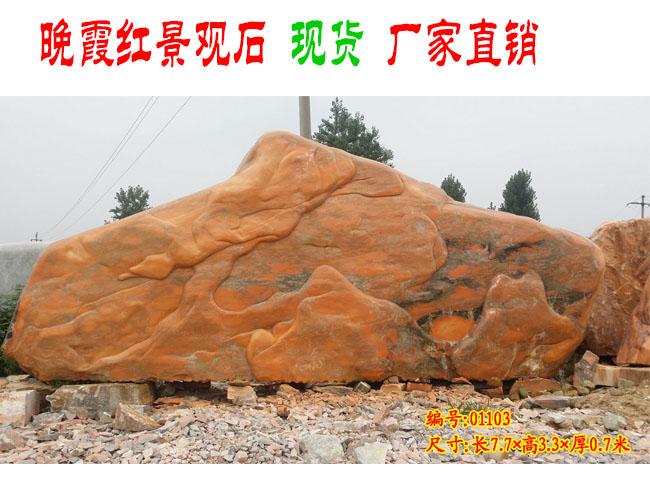 總是有客戶會挑毛病,(這個我們是完全可以理解的,人們都說挑毛病的都是真正的買家!)說這塊晚霞紅上有黑色的條紋,這個可是這一塊晚霞紅景觀石上的*顯眼的缺點。確實,這一點我一點也不愿意否認,但是如果您想象一下這塊景觀沒有這些黑色之后的樣子,自問一把,可是你真正喜歡的(統一的顏色會讓景觀石變得單調乏味)?