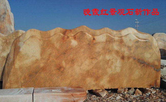 上圖中的晚霞紅景觀石我們使用了我們*好的景觀石原石,可以說是足工足料,料子也是非常的爭氣,整個景觀石的顏色非常鮮艷,(景觀石的料子爭氣就是我們自己行業里的行話,就是晚霞紅景觀石原石切出來之后的顏色非常的鮮艷,漂亮。)我們在這樣的一款景觀石專門的整理出來一個比較平面的位置,專門用來給景觀石刻字做準備,景觀石的這樣的一個平面顏色也是比較的統一,非常有利于景觀石刻字藝術的展示。晚霞紅景觀石之美是雅俗共賞之美。現在已經越來越多的走進了人們的生活當中,在藝術領域有些藝術作品確實很美,但常常曲高和寡,能夠欣賞的人并不多;而有的藝術形式,特別是一些民間藝術深受民眾喜愛,卻又難登大雅之堂。晚霞紅景觀石更是我們公司的特色產品,非常感謝十余年來客戶對我公司的支持,晚霞紅景觀石全國統一訂購電話:18337777750