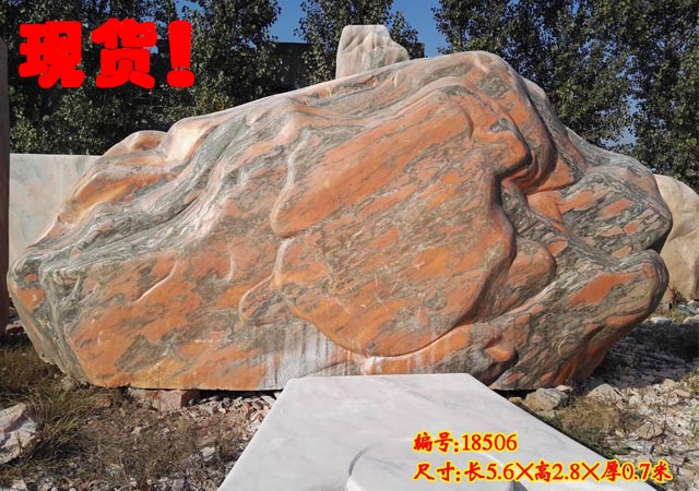 至于晚霞紅景觀石價格怎么樣?晚霞紅景觀石的價格沒有統一的標準,4米左右的出廠價(不含運費,發票,及安裝費用)大概在1-2萬元,尺寸大一些的,例如6米左右的出廠價格為2-4萬元,8米及8米以上的價格為4-10萬不等。主要還是由于景觀石的顏色,形態上的差異造成景觀石的價格的巨大的差別,尺寸一樣可價格為什么會有這樣的懸殊呢?主要看形狀及平滑度,晚霞紅景觀石的的形態,和顏色,如果您想刻字,表面坑洼太嚴重的那就沒辦法雕刻了。所以大家在選購晚霞紅景觀石的時候,要找表面較平的石頭好。