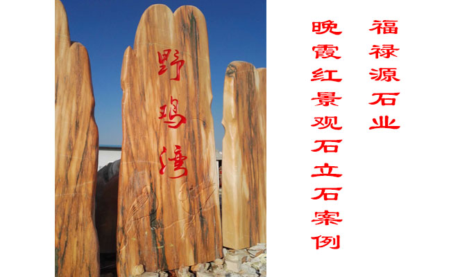 上圖中為您展示的這樣的一款立式晚霞紅景觀石,我們工人用了十天的時間,我們廠子經(jīng)營景觀石十余年,*值得我們驕傲的就是我們自己已經(jīng)有完善的景觀石制作團隊,刻字的工作是我們*重視的售后的工作,景觀石的客戶一般都會做一個景觀石密度的小測試,在石材的背面滴上一小粒墨水,如墨水很快四處分散浸出,即表明石材內(nèi)部顆粒松動或存在縫隙,石材質(zhì)量不好;若墨水滴在原地不動,則說明石材質(zhì)地好,因為其密度比較大,致密性能好,吸水率比較低,這樣在使用過程中會比較的防潮,使用壽命自然會長久。我公司就處在晚霞紅景觀石的原產(chǎn)地鎮(zhèn)平,占盡原材料的優(yōu)勢,我公司的晚霞紅景觀石更是受到社會各界的一直的追捧,晚霞紅景觀石聯(lián)系電話: 18337777750(也是微信)客服Q Q:2222151888。