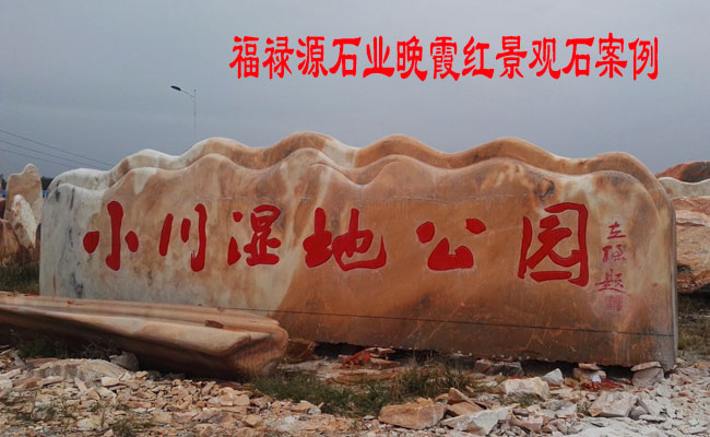 上圖中為您展示的這一款景觀石案例,是我們公司收到邀請為一個濕地公園制作的一款晚霞紅景觀石,作為公園的門牌石,這款景觀石體型較大,也非常符合這個公園的大小,圖中并沒有展示制作的景觀石底座,相信這樣的一塊景觀石經(jīng)過底座裝飾必然會顯得更加的雄偉壯觀。每一款晚霞紅景觀石是天然的藝術品,是大自然的精靈、大自然的奇觀,是大自然賦予全人類的寶貴財富。它獨立成景,自然成畫,一景一首詩,一石一天地,繪出了人們生活的圖畫,譜寫出自然美的樂章。每一個在城市中的景觀石,都默默的為我們的城市增添色彩,默默為我們城市中的每一個居民的生活增加朝氣。    晚霞紅景觀石具有千姿百態(tài)的造型,姹紫嫣紅的色彩和變幻無窮的花紋,是一種高雅的精神享受,也是一種藝術上的追求和陶冶。又有始終如一日、堅貞沉靜孤高的氣節(jié)。它是傳萬世而不毀、流芳萬代的藝術佳品,豐富了人生,美化了人間。在中國經(jīng)濟快速發(fā)展的背景下,景觀石行業(yè)經(jīng)過幾年的發(fā)展也是朝氣蓬勃,相信中國景觀石的將來必然是一片光明,挑選好的景觀石必須找到專業(yè)的制作景觀石的廠家才能有更多的選擇,福祿源石業(yè)是專業(yè)的景觀石、門牌石的生產(chǎn)廠家,我公司就處在晚霞紅景觀石的原產(chǎn)地鎮(zhèn)平,占盡原材料的優(yōu)勢,我公司的晚霞紅景觀石更是受到社會各界的一直的追捧,晚霞紅景觀石聯(lián)系電話: 18337777750(也是微信號)客服Q Q:2222151888。