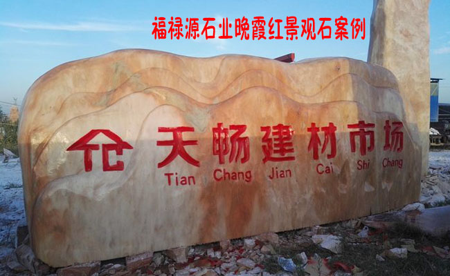 景觀石廠家晚霞紅景觀石門(mén)牌案例  近幾年使用晚霞紅石材做成的門(mén)牌石受到客戶的一直的認(rèn)可,主要是晚霞紅門(mén)牌石的價(jià)格不高,并且做成的門(mén)牌石的效果是非常不錯(cuò),顏色鮮艷,底色與刻字的鮮紅色非常的相稱,給景觀石的展示效果非常好,上圖為您展示的就是我們新做成的一個(gè)晚霞紅門(mén)牌石,景觀石廠家晚霞紅景觀石門(mén)牌案例。福祿源石業(yè)處在晚霞紅景觀石的原產(chǎn)地鎮(zhèn)平,專業(yè)制作各種景觀石,門(mén)牌石,是經(jīng)營(yíng)了十余年的景觀石廠家,我們對(duì)自己產(chǎn)品質(zhì)量高度重視,并且對(duì)景觀石的銷售之后的專業(yè)服務(wù)非常盡責(zé)。晚霞紅景觀石安裝是一項(xiàng)技術(shù)活,安裝時(shí)如果指揮安裝不到位,輕者有損園林景觀石的整體形象,重者會(huì)勞民傷財(cái)、前功盡棄。因此,園景觀石安裝一定要找專業(yè)有經(jīng)驗(yàn)的廠家合作,福祿源石業(yè)就是您好的一個(gè)選擇。點(diǎn)擊晚霞紅景觀石看更多景觀石產(chǎn)品。