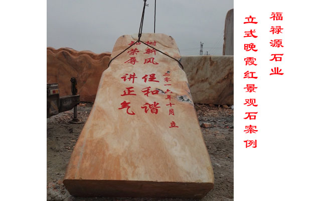 由于這種立式的晚霞紅景觀石價(jià)格上的優(yōu)勢,以及景觀石占用土地面積比較少,展示效果更好,并且更容易成為標(biāo)志性建筑的特點(diǎn),這兩年內(nèi)我們已經(jīng)多次調(diào)整了這種立式晚霞紅景觀石的產(chǎn)量,結(jié)果還是有點(diǎn)供不應(yīng)求的樣子,福祿源石業(yè)處在晚霞紅景觀石的原產(chǎn)地鎮(zhèn)平,專業(yè)制作各種景觀石,門牌石,是經(jīng)營了十余年的景觀石廠家,晚霞紅景觀石更是我們公司的特色產(chǎn)品,感謝我們這么多年新老客服的一直支持,為大家分享景觀石廠家晚霞紅景觀石立石案例。點(diǎn)擊看更多景觀石產(chǎn)品。